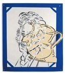Collection; Manufacture Nationale de Sèvres This series started in 1998 with portraits of seated women holding empty blankets. The paintings are done in oil on aluminum wire mesh 68" x 44" each.