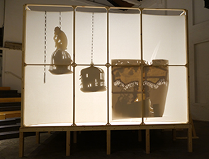 A black bride painted on white tulle curtain was the centerpiece of this exhibition, which closed on Easter Sunday with a live performance in the gallery.