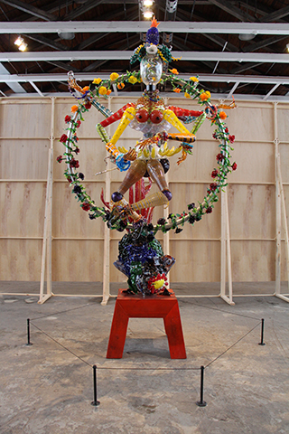 14 ft. blown glass sculpture of a dancing God figure combining the legends of Shiva Nataraja, Carmen Miranda and Josephine baker.