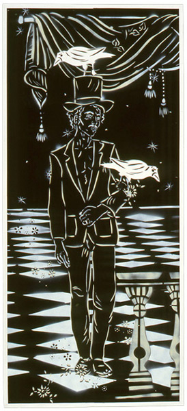 personify whites. As you enter, Patkin uses a technique related to lithography