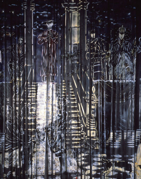 assembled his paintings into four panels: 'Night', 'Dawn', 'Black Rolls' and 'White