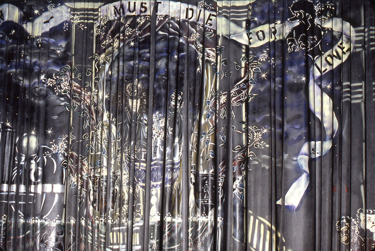 entire plot unfolds not behind the curtain on stage - but on the curtain itself (as a