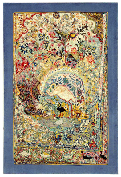 Although Oriental rugs are found in the paintings of many artists, such as Van Dyke, Memling and Holbein, they did not receive serious consideration in Western culture until the age of modernism; Delacroix said that "The most beautiful pictures I have seen are certain rugs from Persia[1]," and Gauguin was the first to notice that the spirit of shapes and colors of the Persian rug was precisely what Western culture needed to discover: