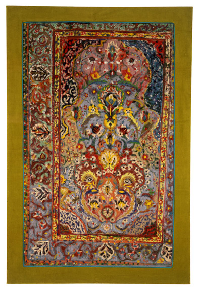 "Color alone as the language of the eavesdropping eye, its powers of suggestion (as A. Delaroche says) which help the imagination to soar, decorating our dreams, opening a new door on mystery and the infinite. Cimabue would seem to have shown to posterity the gates to this Eden, but posterity has answered: Danger! The Orientals, Persians, and others have above all printed a complete dictionary of this language of the listening eye; they have given their carpets a wonderful eloquence. O you painters who ask for a technique of color -- study carpets, and there you will find everything that is knowledge; but who knows, the book may be sealed tight, you may be unable to read it. Besides, you are impeded by the memory of bad traditions. From color determined thus by its own charm, and not designating objects perceived in nature, there emerges a "What's it all about?" that troubles and baffles your powers of analysis.[2] |