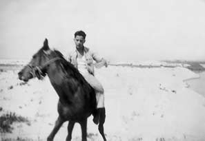 In order to deepen somewhat the Pop connection, I will refer briefly to a work by Larry Rivers: Washington Crossing the Delaware (1953), which was done after a painting by Emmanuel Leutze. This work was one of the earliest harbingers of American Pop, even specifically pointing to a future preoccupation by other Pop artists with the mythology surrounding the American presidency. But in contrast to the distant and parodic approach that characterized the Pop artists of the late 1950s and early 60s, Rivers painting was a direct continuation of an artistic tradition that preferred the painterly touch to the mechanical reproduction of the Pop artists. This is where the approach of Rivers is similar to that of Aroch in the mid-60s. It is interesting to note that two years before Aroch quoted the image of the High Commissioner in his paintings, Rivers was using the image of another ruler, this time from France -- Napoleon. In 1812 Jacques-Louis David painted Napoleon standing in his chamber in a typical pose, with one hand thrust into the lapel of his jacket. Rivers duplicated the figure but dissolved all signs of David's hand and his severe neo-Classical style. The artistic source is identified by means of a large inscription with the artist’s name at the feet of the ruler: DAVID. Aroch was interested in the emphasis on the theatricality of the emperors apparel and stylized setting, and especially in the particular royal shade of red which he later used in combination with blue as signs of rank and ceremony. A further comparison between the works of these artists is in their approach to their roots. Both painters often express a desire to lighten the burden of memories of the past, especially that of the Jews of eastern Europe. Rivers tried to mitigate that weight through the whimsical artistic use of images taken from photographs, graphic documents or charged objects. An early example is his painting Europe I (1956), which was based on a family photograph from Poland taken in 1928 or thereabouts.