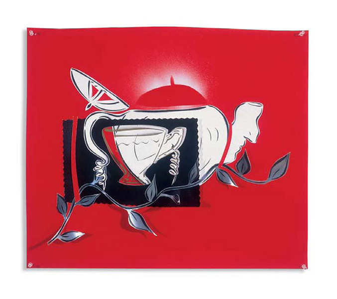 Judenporzellan1998-02 enamel on chrome coat paper, sizes variable Collection; Jewish museums, NYC and Berlin.