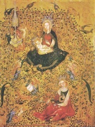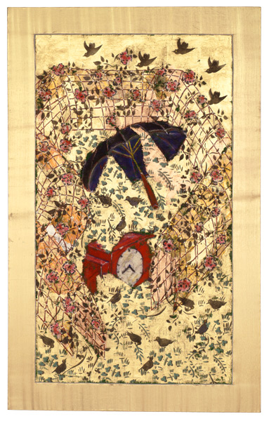 A clear example could be the metaphorical structure that guides Patkin’s inventiveness. He does not start, like an abstract expressionist, from inner life; instead, he draws out of the past, and rejuvenates a symbol already exhausted in the late Middle ages. I refer to Stefano da Zevio’s Madonna of The Rose Garden, (ca. 1402), a gothic recreation of Paradise on earth inspired by a Persian miniature. Hortus Conclusus was the name of this enclosure; in it, the Virgin and the Christ Child occupy the center, surrounded by all the conventions and embellishments of gothic sentiment and ornamentation. As the spectator will see, the painter has retained the Garden, but its inhabitants were replaced. Not exactly a parody – even if he avails himself of that language – because parody, in principle, is an ironic, invasive reading that unmasks one text with another, whereas Patkin reads Da Zevio’s work as one would read a dictionary. What had its beginnings in parody turned out to be a classic baroque operation, in the sense of extracting from identical visual forms different or opposite meaning. Durell speaks of one of his characters as someone who is capable of “this weird translation of feelings into gestures which belied words and words which belied gestures.” For his inspiration, Da Zevio goes to a Persian miniature, Patkin goes to Da Zevio, and both to the Garden as a sign for what apparently is a universal archetype. The Garden as a visual form precedes them; and so does the myth of Paradise.