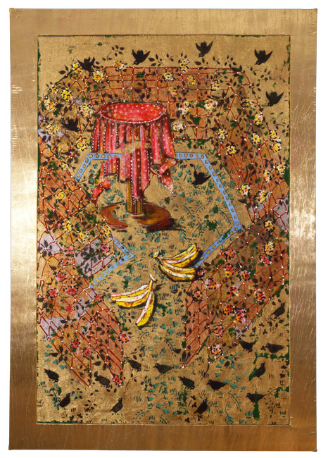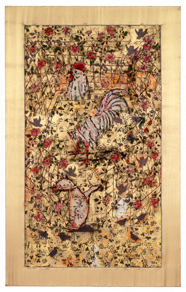 Each of the subjects inside the Garden can submit to various levels of reading. They organize the rhetorics of the Garden and structure its meanings: coins of exchange in a golden mirror; dialogue between signs open to dialogue through time and space. Only this atemporal, anonymous use of the pictorial sign unveils their ritual aspect without making it conventional, repetitious, redundant. The already known – is presented again, this time as an offering: a coin of desire in the palm of your hand.