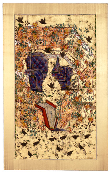 “In an age of traditional conformity,” wrote E.G. Lewis in Dylan Thomas: The Legend and the Poet, quoted by Mario Praz, El Pacto con la Serpiente, “the young poet would have at hand a set of conventional themes that he would certainly modify but that would nevertheless ensure continuity with his predecessors, and provide for adequate communication with his reader. In the past, such themes were indicated by ancient mythology, the Bible story or the legends of the heroes. In a revolutionary period such as ours, not only are values questioned, but conventions are discredited; so that the poet is thrown back upon his own inventiveness . . . for the creation of any theme at all.” In writing about Izhar Patkin’s The Perfect Existence in the Rose Garden, I propose to take this opposition between imagination and convention as my starting point. Perhaps because in this Rose Garden, the individual, (as Nietzsche would say), wishes to contemplate itself mirrored by its conventions and by transfiguration of those conventions. Perhaps because, like some of its models, this Garden draws into the closed reality of myth and visible tradition, the open gaze of desire. “How else,” to quote the poet Rumi, “could a rose garden grow out of the dust?”